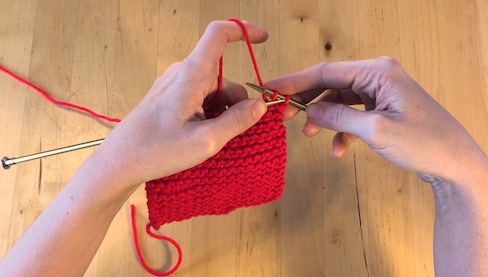 - *Knit one more stitch. Now there are two stitches on the right hand needle.