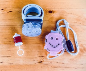 Knitting lamp. This hangs around your neck and the bendable arms allow you to shine light directly on your project, which is helpful if you’re knitting in a dark room, such as while watching a movie (although I don’t recommend these at the theatre.) It’s also often helpful to have more light directly on the project when working with darker colored yarn.