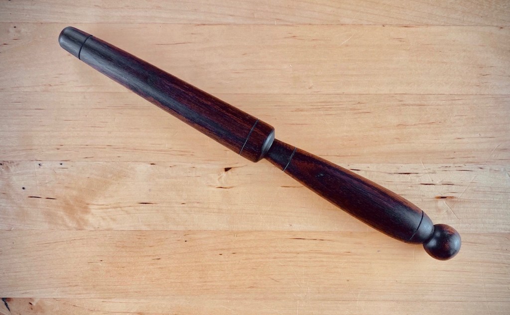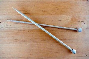 Straight needles. As mentioned above, straight needles have a point on one end for knitting and a cap on the other; you need a matched pair. They come in different lengths.