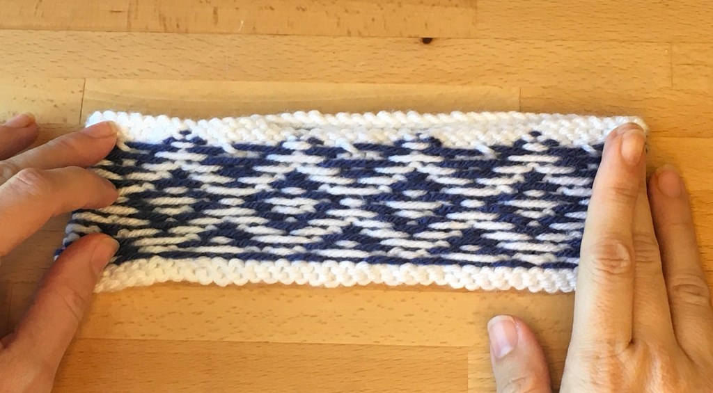 The following video shows how to knit the colorwork sample swatch and provides several tips for success: