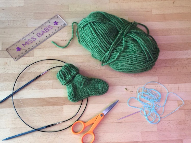 - Setup: Create a 10 stitch swatch with a few rows of stockinette. Stop after a purl row.