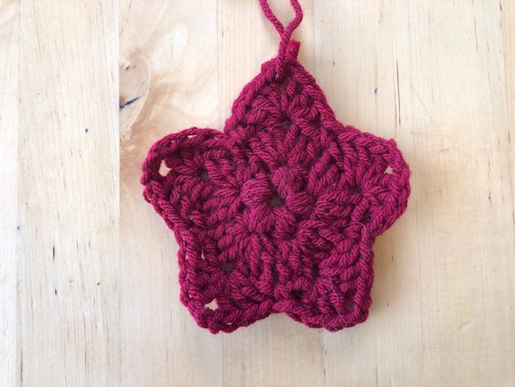 This cute star ornament comes together quickly and can be made by advanced beginning crocheters. Made with worsted weight yarn, it’s an interested pattern to make that also looks great on the Christmas tree.