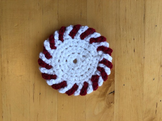 The super fun crochet coasters are easy to make and would be great as gifts. I would say this is an advanced beginner project. I made mine with worsted weight yarn and a size H crochet hook.