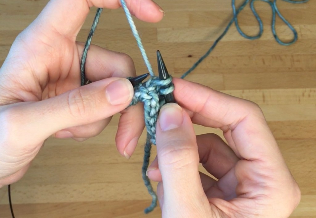 M1L: Make One Left (Use the left needle to pick up the bar in between the first stitch on each needle; for M1L, pick up the bar from the front and knit into the back of the stitch.)