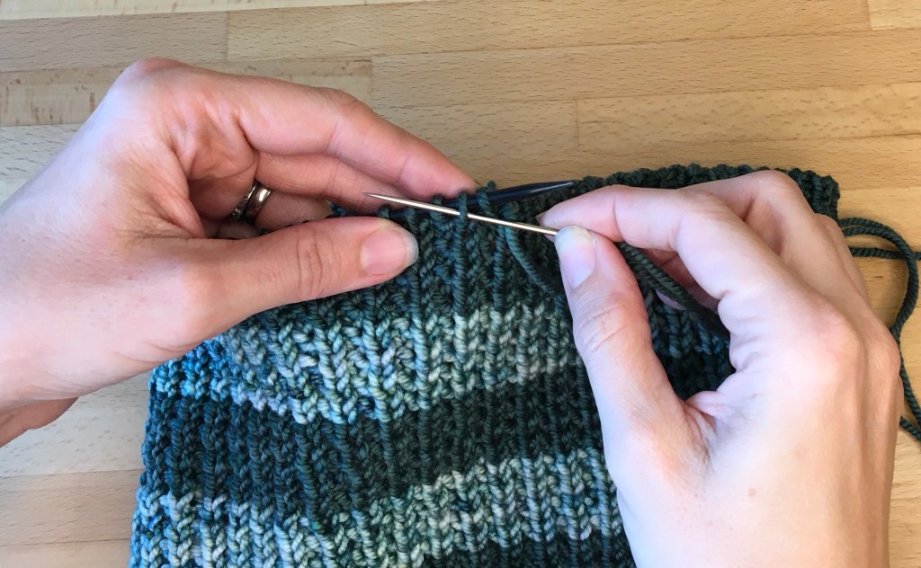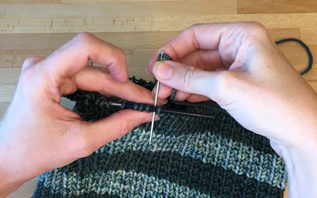 - K2tog: Knit 2 together – insert the right needle into the first two stitches on the left needle (knitwise like usual) and knit them at the same time